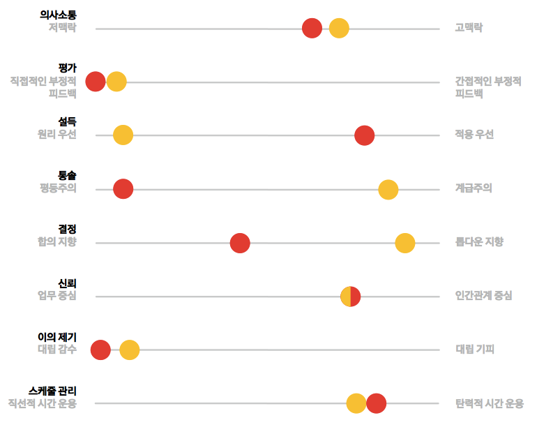 최근 우리 조직도 글로벌 사업이 강화되면서 해외법인들이 늘어나는 추세다. 나는 문화적 맥락의 차이에 따른 조직문화상의 문제가 각 법인들마다 있을 거라고 본다. 최근에 에린 마이어의 컬처 맵이라는 걸 알게 됐다. 에린 마이어 식으로 각 법인별 문화적 차이를 명확히 밝혀낼 수 있다면 법인들이 겪는 문제를 어느 정도 해결할 수 있지 않을까. 이건 정말 먼 미래의 아이디어고 이걸 해내려면 어떤 역량을 갖춰야 할지 감도 안 잡히지만 말이다.